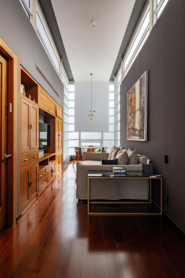 La remodelación buscó potencializar el diseño interior de la ca-sa unificando acabados a través de una paleta de colores neu-tros y materiales como madera de nogal, viroc cinza bruto y granito negro San Gabriel.