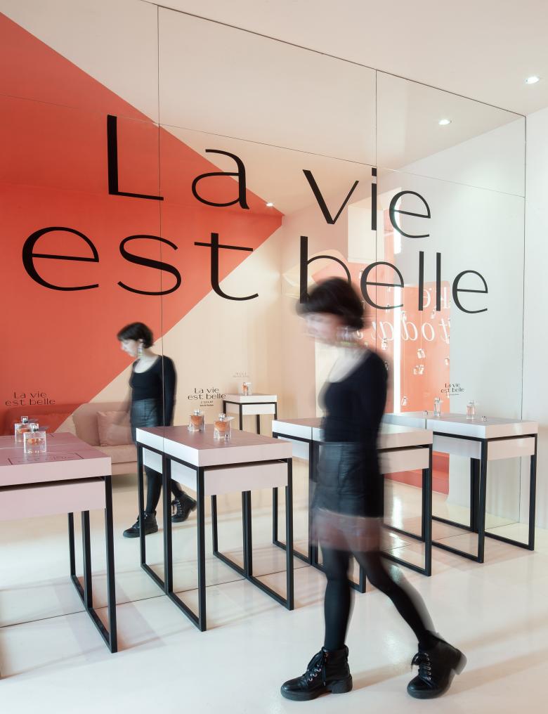 Los asistentes vivieron una experiencia totalmente inmersiva en 250 m2 desde el acceso compuesto por una “Ô” de flores hasta el interior dividido en Skin Care, Perfumería y Make Up con la guía personalizada de consultores de belleza de Lancôme. Todas las áreas están planeadas para sorprender a los visitantes y mostrarles los productos con acciones lúdicas y diferentes estímulos multisensoriales a través del diseño del espacio. Cada habitación se desarrolló dependiendo del producto que se quería exhibir en ella, de modo que la gama de colores, sonidos, texturas y materiales, temperatura e intensidad de iluminación, incluso el aroma, es único en cada segmento del recorrido.