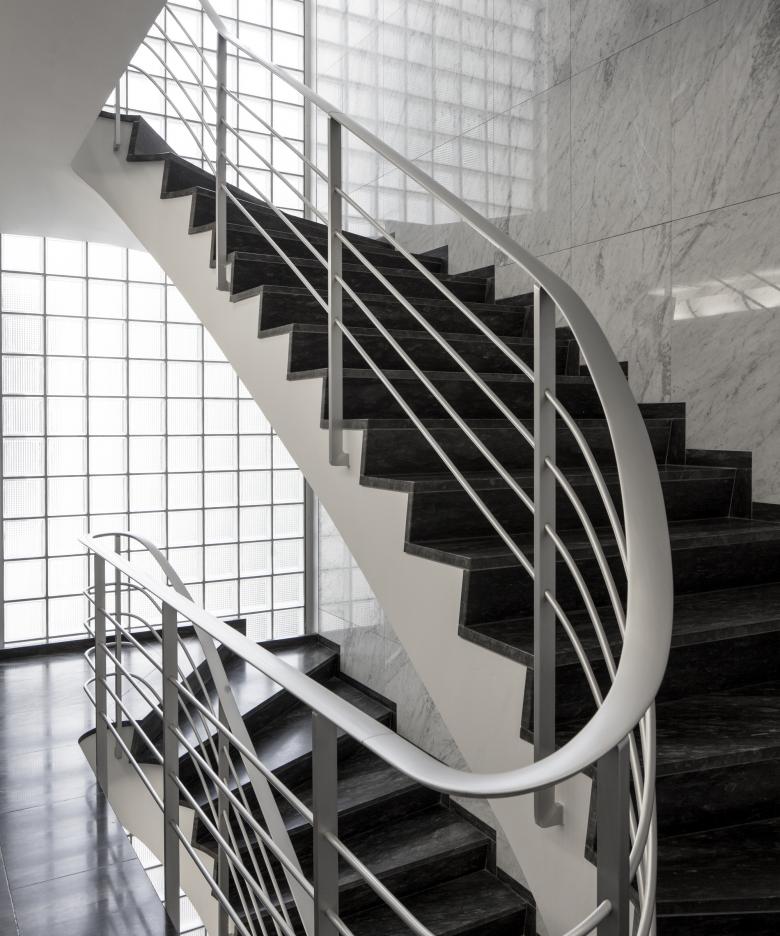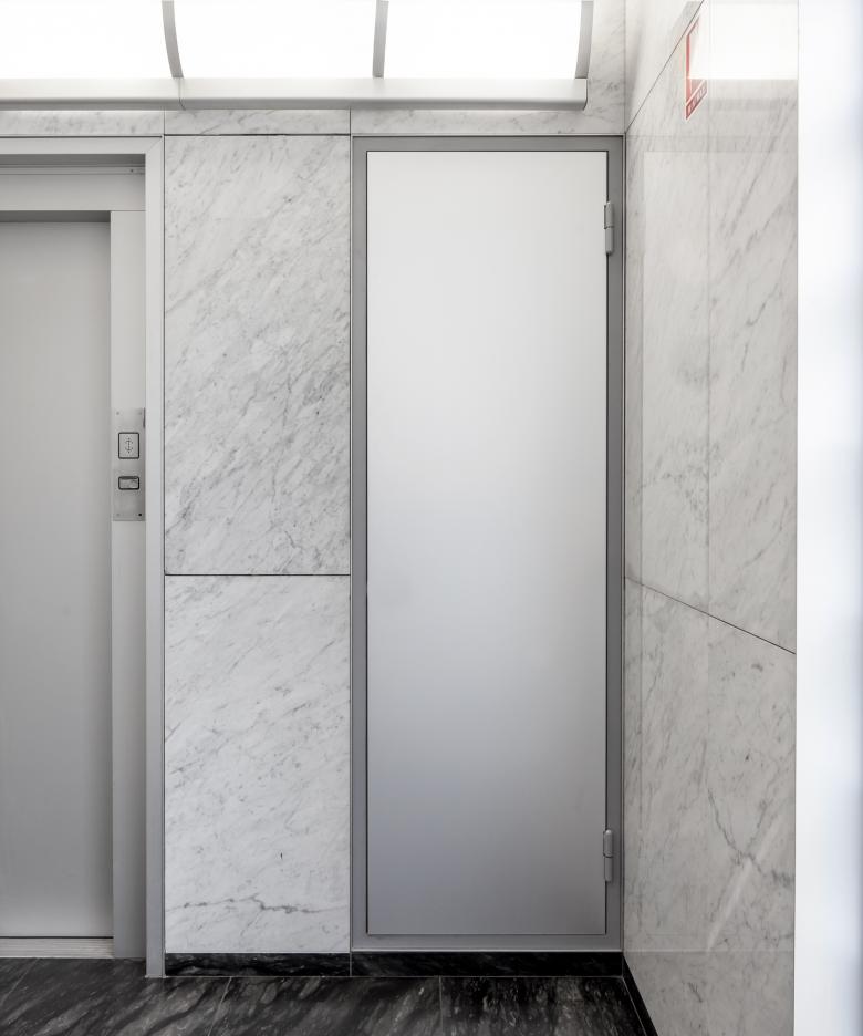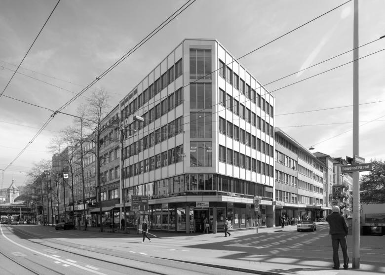 Damit die städtebaulich prominente Position des Geschäftshauses aus den 60er Jahren am Löwenplatz wieder besser in Erscheinung tritt, sollte die Fassade mit wenigen, gezielten Eingriffen aufgefrischt werden. Ebenso musste die Gebäudetechnik, insbesondere die Wärme- und Kältegewinnung, angepasst und wo nötig erneuert werden. Die hinterlüftete Fassade mit den für die Zeit typischen Kalksteinplatten und schlanken Metallprofilen wurde hochdruckgereinigt, örtlich saniert und der Kalkstein neu imprägniert. Das repräsentative, natursteinverkleidete Treppenhaus wurde in einer respektvollen Art und Weise aufgefrischt und die Beleuchtung neu gestaltet. Trotz der knappen Platzverhältnisse wurde im bestehenden Schacht ein neuer, behindertengerechter Aufzug installiert, der alle Mietflächen direkt bedient. Zahlreiche Toilettenanlagen innerhalb der Büros wurden ebenso behindertengerecht neu erstellt. Da der erforderliche Ersatz der Kältemaschine das Öffnen des Daches bedingte, wurde diese Gelegenheit dazu genutzt, eine neue Dachdämmung einzubauen, um die Vorgaben des Gebäudeprogramms zu erreichen. Die Bauarbeiten erfolgten im bewohnten Zustand und wurden geschossweise und in Etappen ausgeführt.