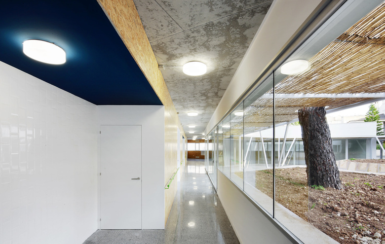In a suburban residential area, situated at the edge between the periphery and the urban tissue of Palma, we are asked to propose a Day center and community activities for a small budget: 620€/m2. The proposal is based on three basic principles:
