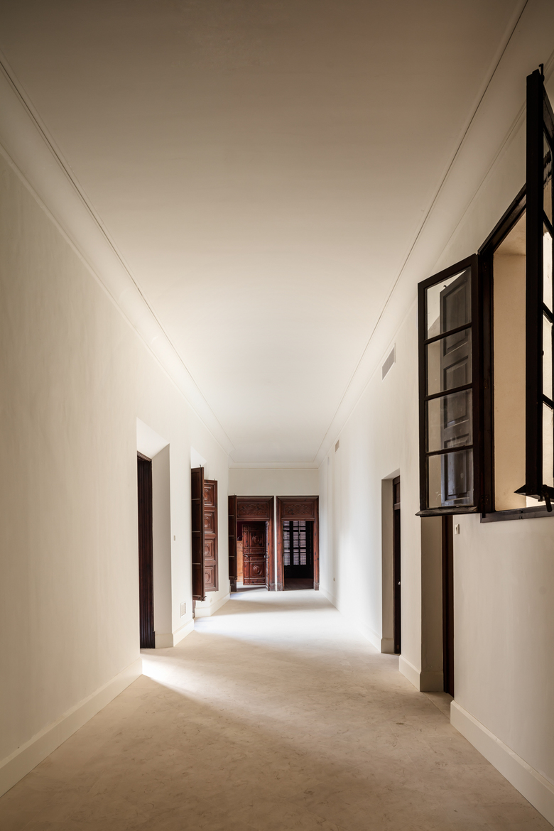 The project converts a former Majorcan family home into a public cultural building for the city of Palma. The new program combines spaces for temporary exhibitions, a house museum in the main floor, a lecture room and offices, and a restaurant at the ground floor linked to the entry patio. The aim of the project is to combine the open, public character of the new program with the domestic qualities of the original building, making possible that these two aspects coexist in parallel, neither dominating the other. The Cultural Centre will contain in its walls and spaces the remains of the history of the building's evolution, which at the time represents the phases that the Majorcan society has been through in several centuries. These traces of time accumulated on the walls and the geometry of spaces that arrived until today, are present in the new building by maintaining the articulation among rooms and the density of light and shadows that conformed the private life of this aristocratic family for years. The Casal Balaguer is present in the historical and social memory of the inhabitants of Palma. Its origins have been dated in the XIII century, extended in the XV century and then again in the XVIII century. This last baroque stage is the one that gives the building its present character. The new public occupation performed now, supposes a complete rehabilitation of the palace at different levels: constructive, structural, geometrical and of uses. This aim to recuperate all the qualities of the as found state represents a sustainable statement, with the conviction that heritage needs to be reincorporated in an active way in the living cultural dynamics of the city.