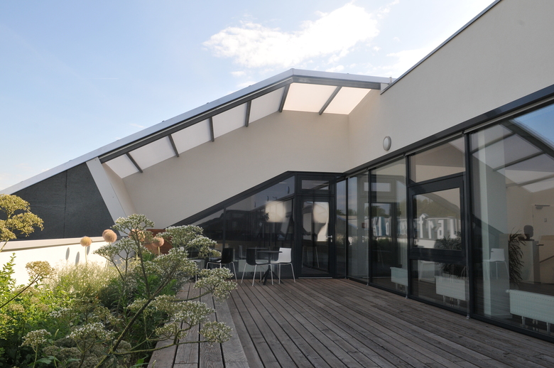 ein modernes unternehmen mit langer tradition hat seine firmenphilosophie auch auf seine behausung übertragen.