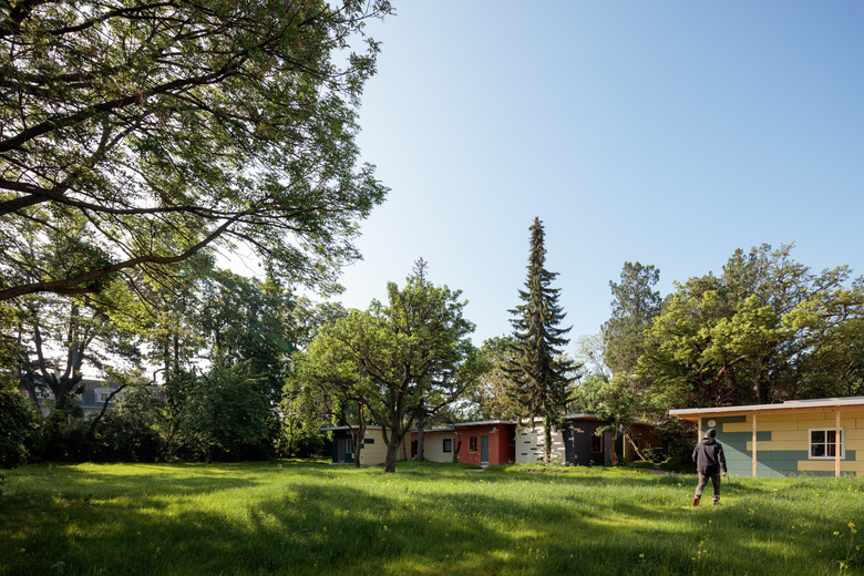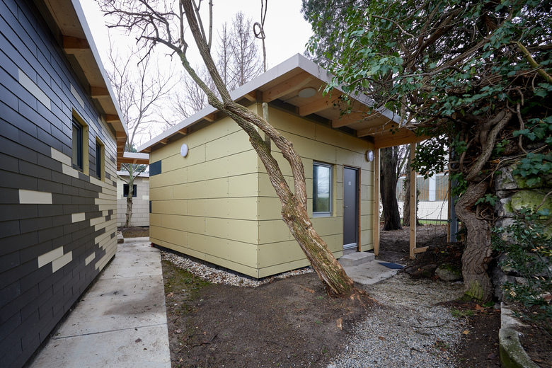 Dem Rückzugsbedürfnis der Bewohner, die oft jahrelang auf der Straße gelebt haben, zu entsprechen, wurden 16 Wohnmodule in Holzbauweise am Rand eines Obstgartens eines ehemaligen Exerzitienhauses in Hetzendorf in lockerer Aufstellung zwischen den alten Baumbestand platziert. Jedem Dorfbewohner steht ein eigenes, abschließbares Zimmer mit Sanitärzelle zur Verfügung. Wer doch mehr Anschluss an das Leben in Dorf möchte, kann das „Gasthaus“ im vollständig sanierten ehemaligen Wirtschaftsgebäude besuchen. Dort gibt es täglich warmen Mahlzeiten, frische Wäsche und ein freundliches Wort. Dort befindet sich auch die notwendige Infrastruktur wie Küche, Duschräume, Waschküche, Personalräume, die Büroräumlichkeiten der VinziWerke Wien und im ausgebauten Dachgeschoss 8 weitere Wohnplätze mit Bad.