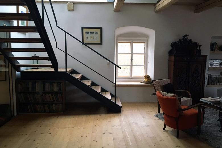 so gelang es, die auch hier sehr wohl vorhandenen unannehmlichkeiten alter gemäuer – bis auf wenige kompromisse – gegen die besondere identität und den enormen charme dieser ehemaligen getreidemühle und ihrer geschichte zu tauschen. die unzähligen kleinen und größeren elemente, materialien, formen und räumliche situationen, von denen oft nicht klar ist, wie authentisch sie zum ursprungszustand stehen, spiegeln heute völlig authentisch den lebenszustand der neuen bewohner im neuen kapitel der langjährigen geschichte dieses gebäudes wieder. unmöglich, soetwas im herkömmlichen sinn zu entwerfen und zu planen – im nachhinein aber völlig schlüssig, dass es sich auf basis des starken grundkonzepts und der vielen entscheidungen für das naheliegende „einfach so“ weiterentwickelt hat.