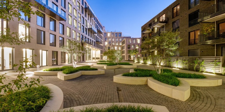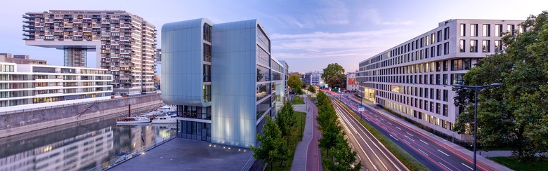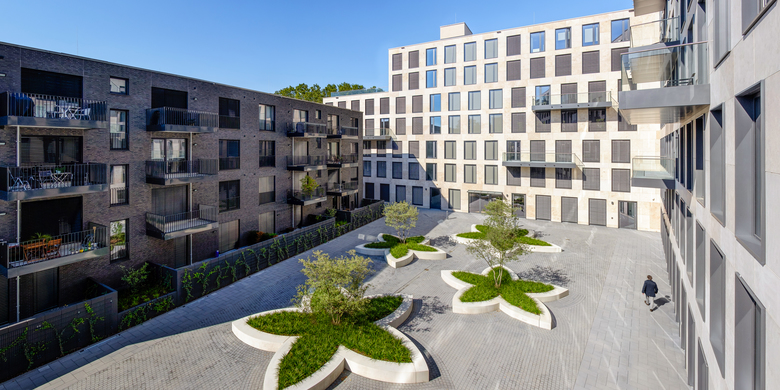 Die neue Bebauung am Weichserhof in Köln avanciert durch einen neuen Büro- und Wohnkomplex zu einer einprägsamen Adresse und markiert gemeinsam mit dem gegenüberliegenden Microsoftgebäude den neuen Stadteingang im Süden Kölns.