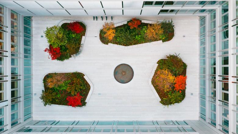 The former Swiss Re office building is situated at the Badenerstrasse in central Zurich. The existing building was completed in the early ’80s and desperately needed a remodel to house the new KPMG headquarters. It is stripped down to its bare structure to be rebuilt as clearly visible volumes in its surroundings to retain its zoning privileges. The minimalist design approach emphasizes the vertical double columns and expresses the structure's true appearance to the outside. By projecting the geographic world map onto the floorplan, the building is divided into two main areas: “Generic Offices” and “Collaboration Spaces.” The minimalist design approach emphasizes the vertical double columns and expresses the structure's true appearance to the outside. By projecting the geographic world map onto the floorplan, the building is divided into two main areas: “Generic Offices” and “Collaboration Spaces”.