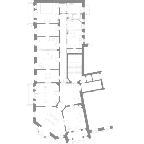 Ein erfolgreicher Jungunternehmer wünschte sich repräsentative Büro- und Gesellschaftsräume, kombiniert mit einem privaten Wohnbereich in urbanem Umfeld. In der grossbürgerlichen Wohnung aus dem Jahre 1892 wurden seit einem einschneidenden Umbau in den 50er Jahren keine nennenswerten Unterhaltsarbeiten mehr vorgenommen. Der jetzige Umbau wurde in Zusammenarbeit mit der Kantonalen Denkmalpflege durchgeführt. Das Erneuerungskonzept sieht einen öffentlichen Bereich mit fünf Räumen vor, deren Nutzung dem jeweiligen Anlass angepasst werden kann, und einen, drei Zimmer umfassenden Wohnbereich. Diese Aufteilung stimmt mit der ursprünglichen Raumstruktur überein, die eine vordere und eine hintere Zimmer-Enfilade aufweist. Neu wurde durch das Zusammenlegen von ehemaligem Bad, WC und Vorraum ein grosszügiges Badezimmer für den privaten Gebrauch geschaffen. Das Weisse Schloss war Finalist beim Architekturpreis «Der Beste Umbau» 2006.