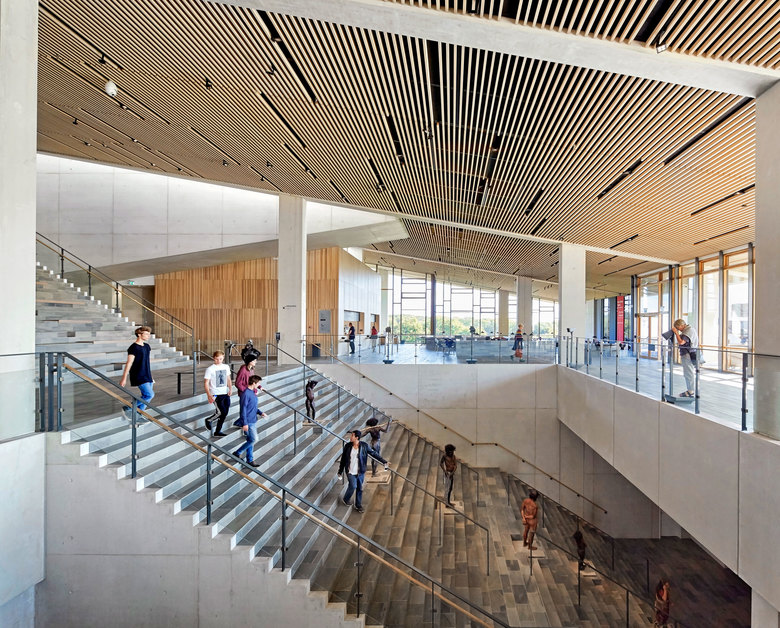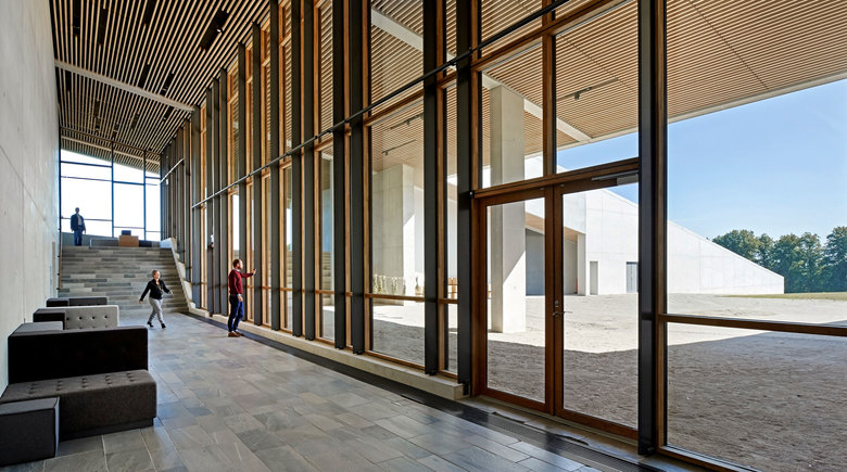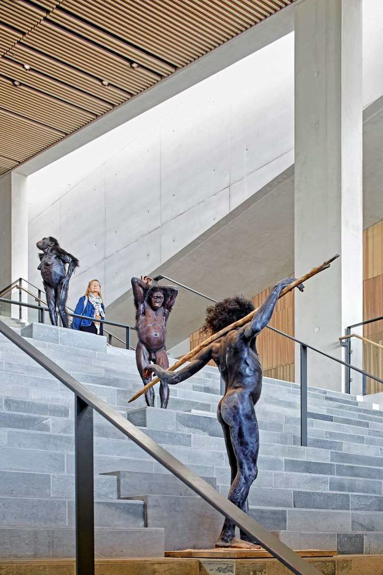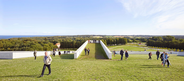 Moesgaard Museum's sloping roof, landscaped with grass and moss, makes the museum a striking icon in its historical setting. In the summer months, the roof is used as a theater stage, cycling track, and Viking market. In the winter, after a fall of snow, the steep roof is the most popular tobogganing slope in the area. The diverse use of the museum far exceeds our expectations. As an invitation from prehistoric times, the museum beckons visitors to come inside and explore the exhibition halls – designed as terraces that open up to reveal their secrets, like the strata of an archaeological excavation. After Moesgaard Museum moved into its new premises, the number of visitors has increased to more than half a million per year.