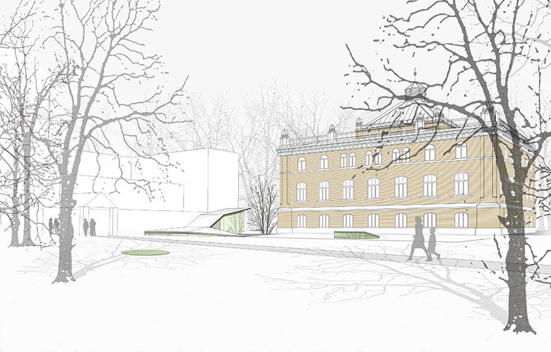 Das neue MRT-Labor ist Teil des „physikalischen Parks“ der PTB. Der MRT liegt unterirdisch im ehemaligen Quarzuhren-Keller, dem Untergeschoss des Observatoriums vorgelagert. Eine aufgefaltete begrünte Dachfläche bildet den skulpturalen Eingang; das “Abtauchen” wird ablesbar, das Laborgebäude wird so Teil dieses Parks.