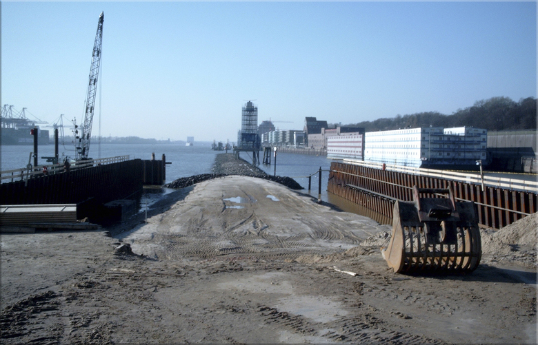 Der rege Schiffsverkehr auf der Elbe erforderte aber auch besondere Vorkehrungen für Haverien. Hierfür wurden als Schutzmaßnahme drei kreisrunde Dalben erdacht, die jedem Schiffsanprall standhalten werden.