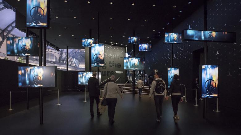 Die vier Szenarien (»Intuitive«, »Energize«, »Ecite« und »Responsible«) formen als architektonisch-dramaturgisches Ganzes auf jeweils unterschiedlichen Ebenen einen urbanen Kontext. Dessen Fassade ergibt am Ende der Customer Journey dann das »Big Picture«. So wird auf sehr eindringliche Art und Weise deutlich, wie Mercedes-Benz heute die Voraussetzungen dafür schafft, die neue mobile Welt von Morgen ökologisch und gesellschaftlich nachhaltig zu gestalten.