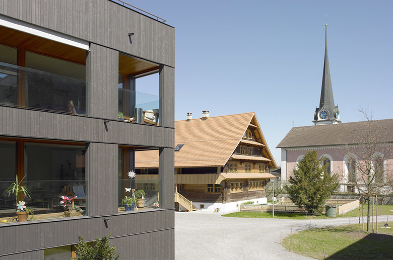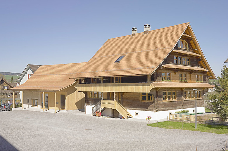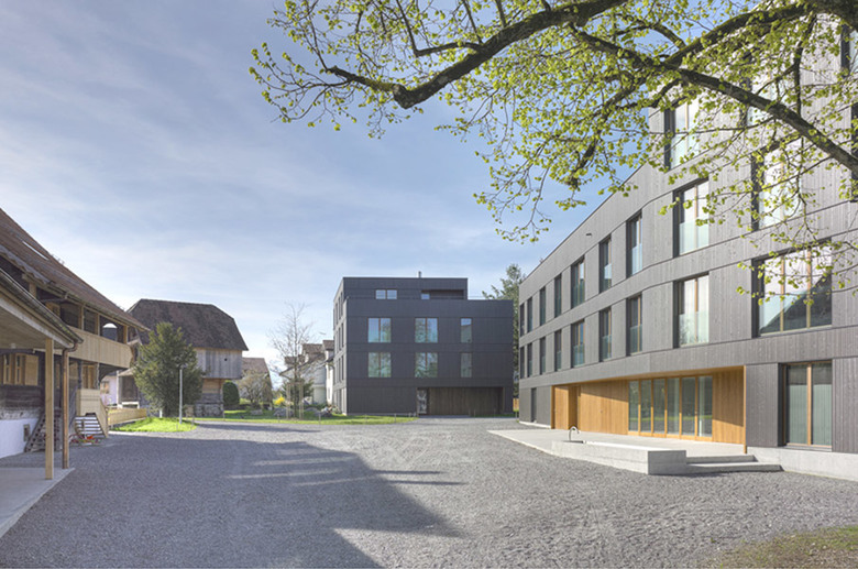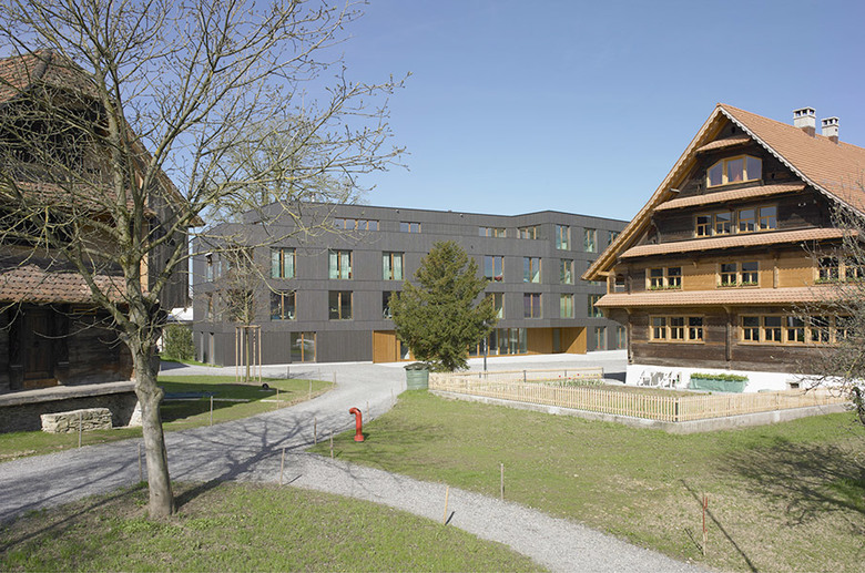 Der Margrethenplatz, als Teil einer Raumabfolge, wird wieder hergestellt. Er soll sowohl Fest wie Wohnplatz sein. Die verschiedenen Zugänge sind präzis gestaltet und erinnern gleichwohl an den ehemaligen Hofplatz mit seiner scheinbar zufälligen Stellung der Volumen. Die bestehenden Gebäude auf der einen und die neuen Gebäude auf der anderen Seite bilden zusammen diesen immer noch ländlichen Aussenraum. Durch diese gemeinsame Aufgabe werden sie zu einem neuen Ensemble. Die Fassadenfluchten des Platzhauses folgen den unterschiedlichen Anforderungen an die verschiedenen Gebäudeseiten. Zum Margrethenplatz hin dient die Fassadenflucht hauptsächlich der Platzbildung, Die Fassadenhöhe regiert auf die beiden bestehenden Gebäude. An der Margrethenstrasse weicht die Fassadenflucht vor der bestehenden Linde zurück um, mit gebührendem Abstand, dem gegen Westen orientierten Aussenraum, mit einem Richtungswechsel gegen Norden, einen Abschluss zu geben. Auch beim kleinen Mehrfamilienhaus entsteht das Volumen aus den Anforderungen der umliegenden Gebäude und der Platzbildung. Für den Margrethenplatz bildet es zusammen mit dem neuen Baum und dem verschobenen Spycher einen dem ländlichen Charakter entsprechenden Abschluss. Zum Spycher hin weicht die dreigeschossige Fassadenflucht leicht zurück, während sie in gleicher Höhe, zum bestehenden Bauernhaus an der Margrethenstrasse auf der ganzen Länge einen parallelen Zwischenraum vermeidet. Viergeschossig schliesst das kleine Mehrfamilienhaus gegen Süden das neue Ensemble ab und verhält sich somit analog dem Platzhaus, dessen viergeschossige Gebäudeteile gegen Norden und Westen gerichtet sind. Alle drei Attikaaufbauten weichen vom Bauernhaus Margrethenhof zurück und unterstreichen dessen Bedeutung für den Platz. Der ehemalige Schweinestall wird zum Kulturraum umgebaut. Mit seiner volumetrischen Erscheinung stärkt er die Reihe der bestehenden Häuser. Die bestehenden und die neuen Gebäude unterscheiden sich klar in ihrer volumetrischen Erscheinung. Während die alten Gebäude, basierend auf präzisen orthogonalen Grundrissen, mit Vordächern, Lauben, Klebedächern fast verspielte Ansichten haben, antworten die neuen Gebäude darauf wie Passstücke mit ihrer unscharfen Grundrissgeometrie. In der Ansicht erscheinen sie als scharf geschnittene Volumen und lassen so den aufwändiger gestalteten alten Häusern Raum. Um das neue Ensemble um den Margrethenplatz von aussen als solches erscheinen zu lassen, nähern sich das Fassadenmaterial und die Fassadenfarbe der neuen Gebäude derjenigen der bestehenden an.