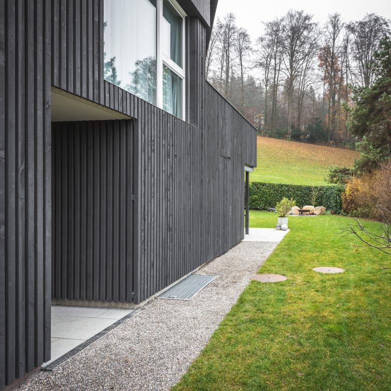 Das renovierte und modernisierte Gebäude wurde in seiner Grundstruktur beibehalten, jedoch in der Formensprache aussen mit einer vertikalen Holzverkleidung bereinigt und vereinfacht.