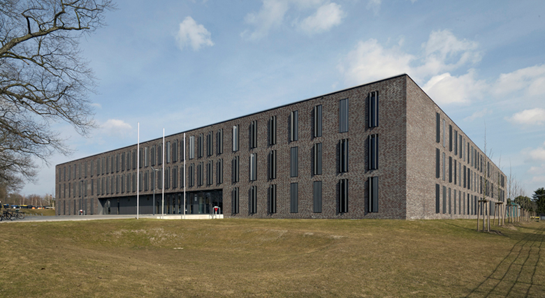 Bei dem Unterkunftsgebäude handelt es sich um eine dreigeschossige, u-förmige Anlage, die alle Nutzungen für die Unterbringung und die Betreuung in einem einzigen Baukörper vereint. Auf jeder Ebene befinden sich zwei Wohngruppen, die mit je 42 Häftlingen belegt sind. Die Verwaltungseinheit ist zentral über die Etagen verteilt im Mittelteil des Gebäudes angeordnet. Lager, Hauskammern und Technikräume befinden sich im UG.