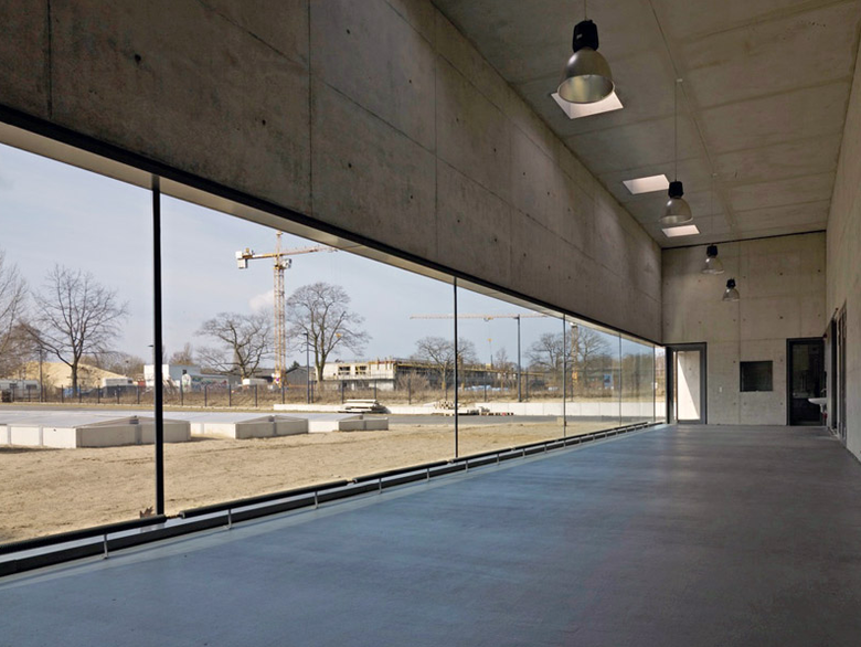 Der Neubau der offenen Vollzugsanstalt in Berlin Zehlendorf bietet Platz für 250 Häftlinge. Der Eingang orientiert sich zur Robert- von- Ostertag Strasse eine mit großen Alleebäumen gesäumten Straße. Die Gesamtanlage umfasst drei Gebäudeteile. Neben dem Unterkunftsgebäude gibt es ein Gewächshaus, das einen für die Öffentlichkeit zugänglichen Blumenshop erhalten hat und ein Garagen- und Werkstattgebäude.