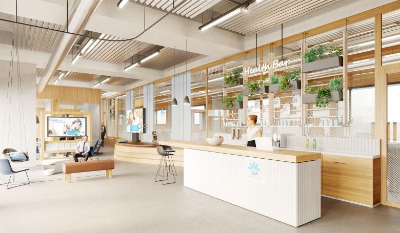 Die CSS richtet sich neu aus und positioniert sich als Gesundheitspartnerin, die ihre Kundinnen und Kunden unterstützt, gesund zu bleiben, zu werden oder mit einer Krankheit besser zu leben. Diesen Anspruch setzen die beiden Architekturbüros Nau2 und Mint Architecture in einer Arbeitsgemeinschaft (ARGE) erstmals am Standort St. Gallen in den dreidimensionalen Raum um. Zusammen mit den Verantwortlichen übersetzen sie die Werte und Positionierung in ein neues Betriebskonzept, welches das Thema Gesundheit ins Zentrum der Customer Experience rückt. Sie entwerfen ein hybrides und interaktives Nutzungskonzept, das die neue Art und Weise, wie die Agentur auftritt und arbeitet, widerspiegelt.