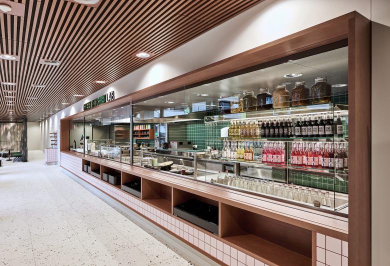 Den tausenden Studierenden auf dem Campus der Universität Zürich Irchel stehen für ihre tägliche Verpflegung eine Mensa sowie kleinere Cafeterien mit unterschiedlichen Konzepten zur Verfügung. Bereits 2019 hat Mint Architecture im Erdgeschoss der Hauptmensa die Cafeteria Seerose in ein modernes Gastrokonzept mit Selbstbedienungsrestaurant umgewandelt. Beim Umbau des ehemaligen Atriums lag der Fokus auf einer sorgfältigen räumlichen Gestaltung unter Berücksichtigung bestehender Strukturen.