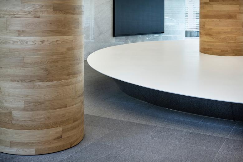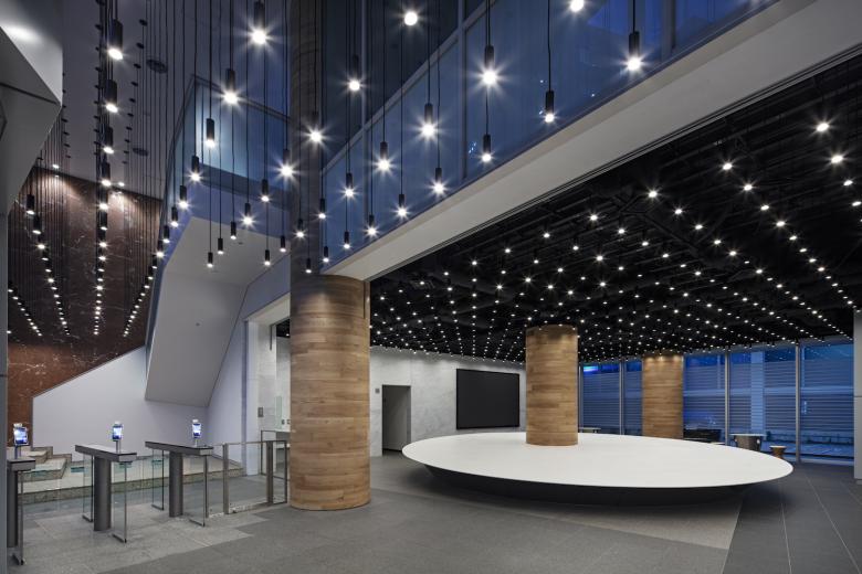 情報通信インフラを事業とするエクシオグループ本社ビルの1階エントランスの改修プロジェクト。