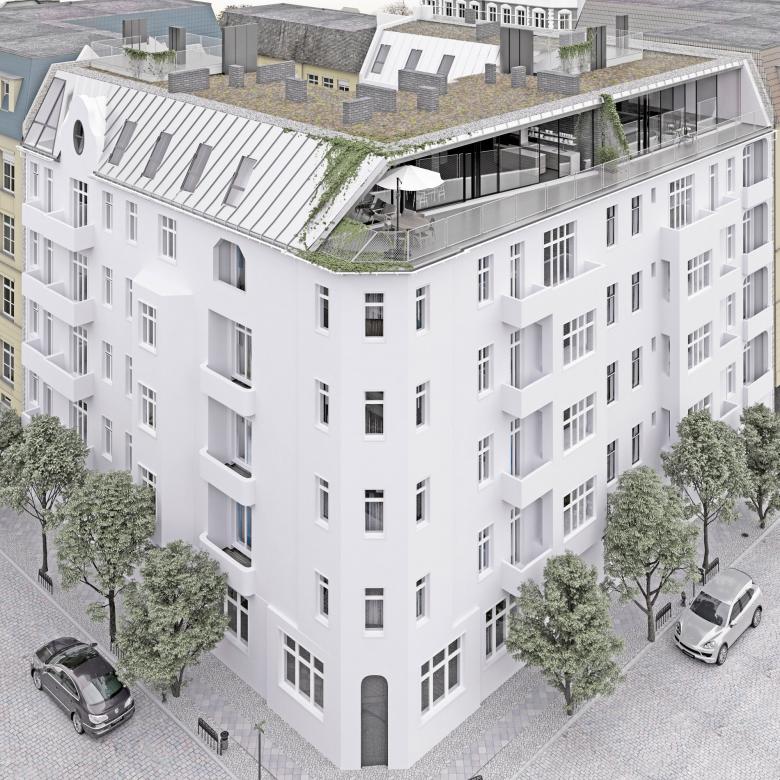 Mit dem Dachausbau des 1906 erbauten Wohn- und Geschäftshauses entstehen drei hochwertige Apartments mit 4 bis 6 Zimmern und großzügigen Wohnflächen. Jede Einheit verfügt zudem über eine eigene Dachterrasse; zwei der Apartments erhalten zusätzlich eine Aufdachterrasse mit Blick über die Stadt.