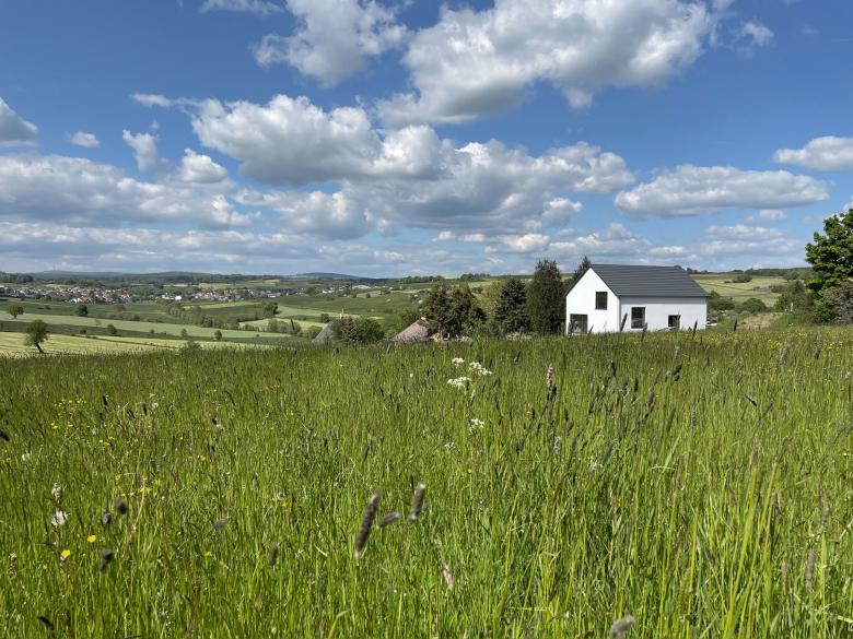 Dieses Haus wurde in Massivholzbauweise geplant. Es hat einen geräumigen und effizienten Grundriss und öffnet sich der umliegenden Landschaft mit großen und präzise platzierten Fensterflächen. Mehrere Außentreppen vermitteln zwischen dem Innen- und Außenraum, eine überdachte Terrasse funktioniert als weiteres Zimmer im Garten.