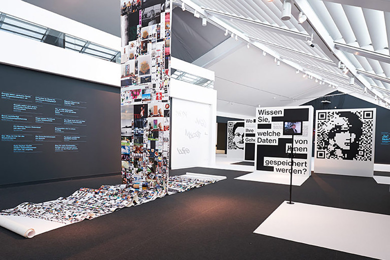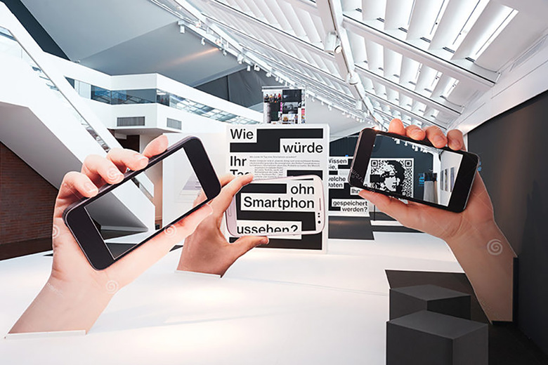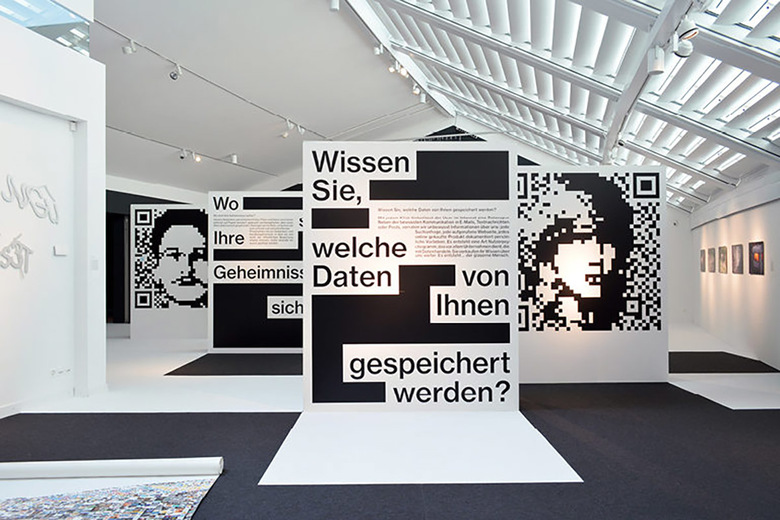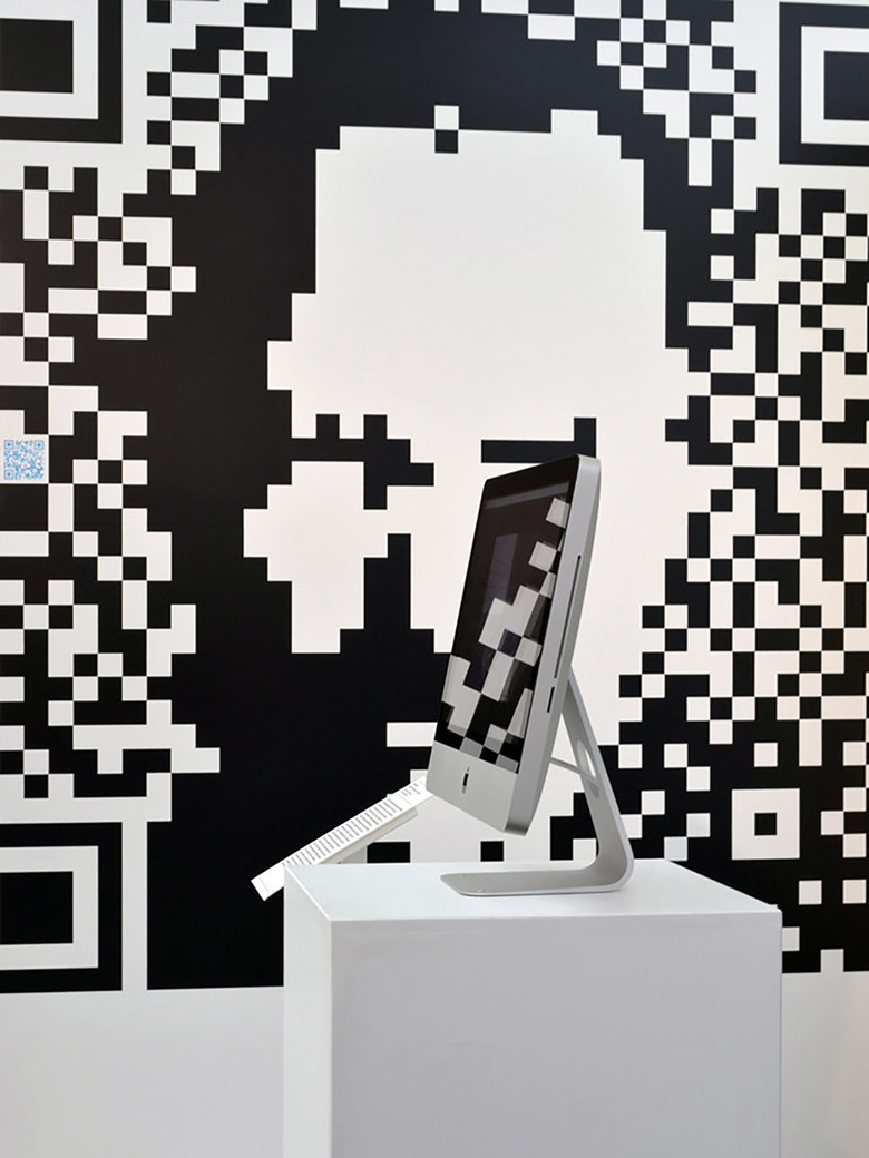 Online leben ist aber nicht abstrakt. Die Szenografie präsentiert auf den Stellwänden die Gesichter des Netzes als übergrosse pixelisierte QR-Codes. Diese verschiedenen repräsentativen Persönlichkeiten wie Steve Jobs, Edward Snowden oder Kendall Jenner stehen emblematisch für die Vielfalt des Netzes und gleichzeitig für das Menschliche im online Leben. Diese wiederkehrenden QR-Portraits funktionieren zusammen mit den übergrossen Grafikelementen als roter Faden, der durch die ganze Ausstellung führt. Eine speziell entwickelte App erlaubt zusätzlich jedem Besucher, sich weiter über die Persönlichkeiten online zu informieren und am Ende von sich selbst, ein pixelisiertes QR-Portrait als Souvenir zu generieren.