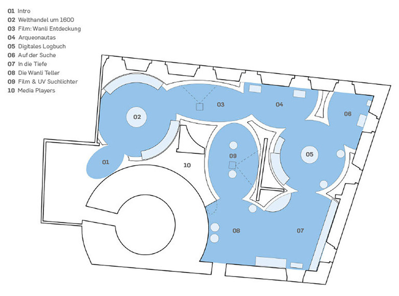 Das szenografische Konzept verwandelt die historischen Ausstellungsräume in eine Serie von ineinandergreifenden Luftblasen. Sieben sphärische elliptische Räume, gebaut aus Spannstoff, erzählen die Geschichte der Bergung von 700,000 Porzellanartefakten aus der Ming Dynastie, die erst kürzlich an der indonesischen Küste gefunden worden sind. Die Ausstellung ist als sinnliche Erzählung erlebbar, wo der Besucher von den Wellengeräuschen der Ozeanoberfläche empfangen wird, gefolgt von Atemzügen eines Tauchers und dem Geräusch eines Sonargeräts. So wird der Prozess maritimer Archäologie erklärt.