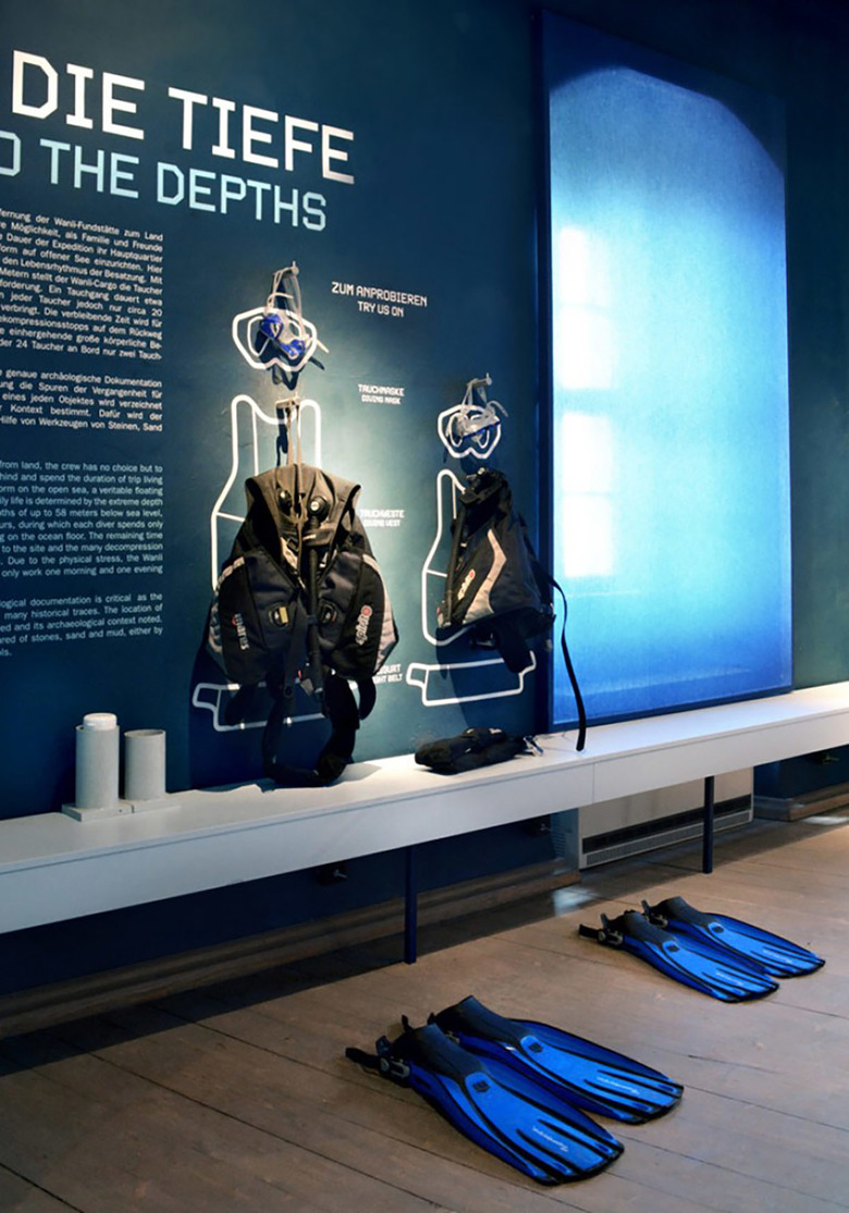 Der Besucher wird eingeladen aktiver Entdecker dieser Unterwasserwelt zu sein. Neben den Artefakten sind persönliche Geschichten der Besatzung durch interaktive Stationen erlebbar. “Gearing Up“ bietet einen Maskensatz, Finnen, Gürtel mit Gewichten, und Tauchwesten, die der Besucher anprobieren kann. In einem abgedunkelten Filmraum sind zwei Suchlichter mit ultravioletten Spotlights installiert; wenn Gäste die ovalen Wände mit UV Licht streifen, werden plötzlich Fakten und Figuren über die Tauchoperationen sichtbar, was zur spielerischen Interaktion einlädt.
