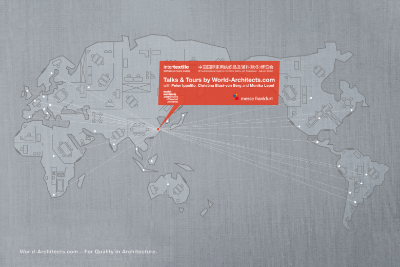 Free Guided Tours with 7 Architects and Designers – in cooperation with Messe Frankfurt World-Architects organised 6 guided tours with Astrid Schaal, Jutta Werner, Marc Mir, Sylvia Leydecker, Peter Joehnk, Julius Reimann and Lisa Pavitschitz. Each of them pointed out highlights at the Heimtextil 2020, the leading trade fair for home and contract textiles. The guided tours were conducted in English or German and last approximately 1,5 hours. Started in Hall 4.2 | E95 Interior.Architecture.Hospitality - Meeting Point.