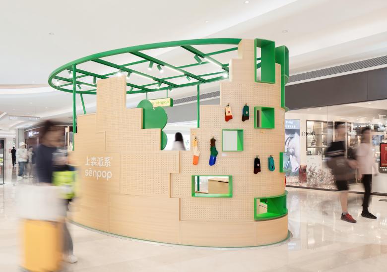 Commissioned by socks brand, Senpop, Office ZHU has completed a retail design, Garden Island, in Shenzhen Yifangcheng Shopping mall.