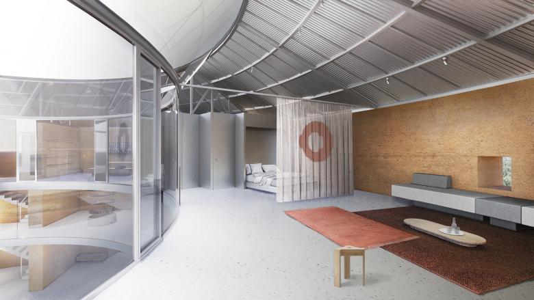 Structurally, we have used the rammed earth technique to build cores and shafts. These blocks also work as spatial divisions, vertical traffic, support and pipe organization. The steel structure links the original earth walls to the new core, creating horizontal support. Steel trusses and metal tiles are used to create a more insulating and lighter roof.