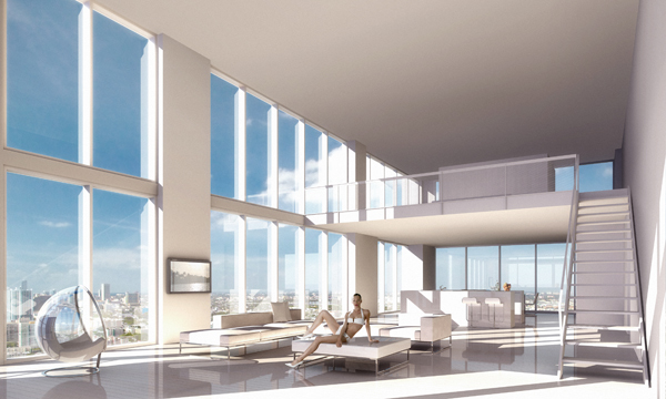 The constant play of light and shadow defies gravity-Element appears to float weightlessly above the cerulean waters of Sapphire Bay. The lush greenery and bright tropical flowers of the designer gardens at its base become an integral part of the structure itself in the double height terrace that wraps the central core of the tower on the fourth and fifth levels-a fantasy of Sky Gardens, pavilions and limpid pools that completes the seamless integration of exterior and interior volumes.