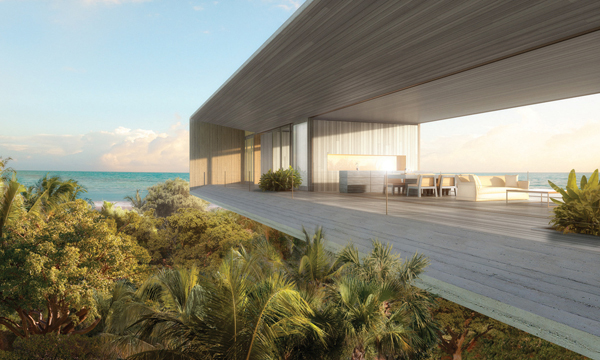 A private island in the Turks and Caicos is being transformed into a laboratory of contemporary architecture by visionaries Zaha Hadid, Shigeru Ban, David Chipperfield, Carl Ettensperger, Kengo Kuma, Chad Oppenheim and Piero Lissoni. Oppenheim was selected as one of 7 architects to create a series of villas for the Mandarin Oriental Group. The design for the 8 villas emerges from a profound admiration and hyper-sensitivity of Dellis Cay's unique natural setting. The intention is to integrate nature as a major ingredient of the material palette. The architecture is reduced to the essential components for shelter—amplifying the ever-changing sky, water and vegetation that define the experience. As the 8 villas are located on the only interior parcels of the island, they are elevated over the treetops to maximize exposure to the wondrous nature about-- taking advantage of the views towards the horizon and framing its surroundings. Their elevated position allows for them to have little impact on the ground plane allowing the undisturbed natural landscape to flow under them as an integral part of the design. The tree-top villas are precisely orientated on their parcels to maximize their performative and experiential qualities, channeling prevailing winds to cool the interior spaces as well as framing sunrises, sunsets, and the path of the moon on either side of the structure. Resources are limited in the island, passive and active mechanisms have been proposed-- such as large overhangs, cross-ventilation, use of reclaimed materials, solar hot-water, an insulating green roof, and a rooftop infinity edge pool that doubles as a rainwater collection tank.