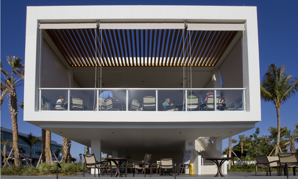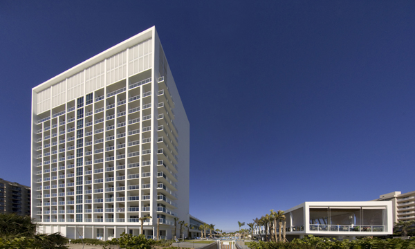 With its dramatic presence and classic lines, the architecture of the resort integrates and enhances the surrounding environment-- setting up moments to appreciate and amplify nature's rhythms and wonders. Through a few powerful yet simple gestures; the architecture captures the essence and easiness of the Gulf Coast Florida lifestyle. Five rectilinear volumes of similar width and diverse proportion position themselves dynamically around the site to optimize vistas of the beach for every residence. Lush tropical landscaping and pools cascade towards the Gulf as they weave through the architecture generating exterior rooms and gardens to absorb the delightful climate and setting. The residences are configured for optimal openness to the environment by merging large interior and exterior rooms that blur the line between inside and out. Floor to ceiling glass walls inundate the residence with abundant vistas and fresh sea breezes-- while providing ample space for relaxing and entertaining. The interior of the residences are sincere to a Gulf Coast beach lifestyle with comfortable furnishings, natural materials, and a fresh color palette.