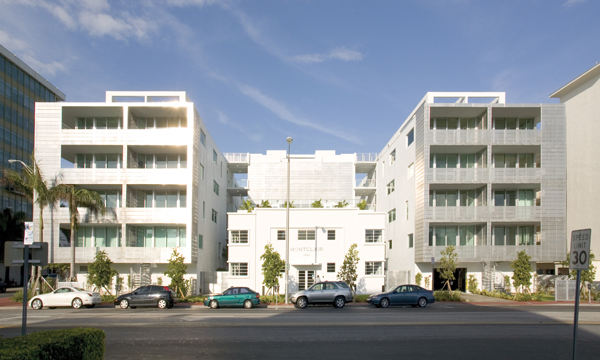 A dramatic entry sequence-- emphasizes differentiations is time-subtly sequencing from old to new. Upon passing through the original front doors of the apartment building, one is confronted by a curvaceous, ramping portal, which leads to a lobby in which glass elevators pierce a glass ceiling It is this interstitial zone, which organizes the project in multiple dimensions simultaneously. Clarity in plan and section create efficiencies that permit internal, open-air boulevards of ample width-establishing moments for communal interaction. Forty units, some newly created and some carved from the existing structure, are configured to provide an open plan and dual exterior exposures-allowing for abundant light/air and ultimate owner flexibility.