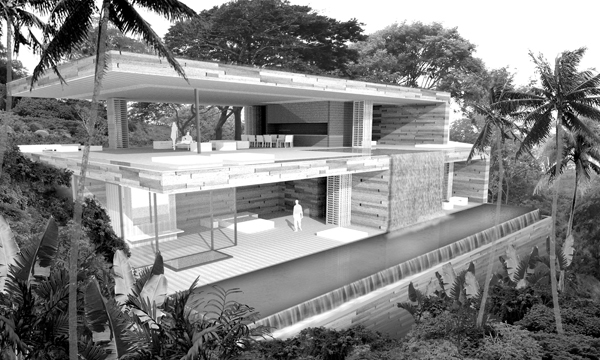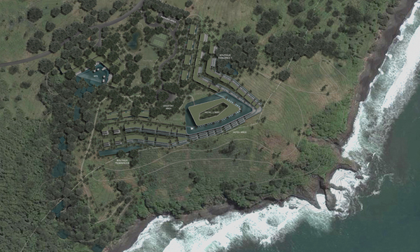 The architecture undulates harmoniously with the contours of the slopes and cliffs with nominal impact and primal elegance-synchronizing with the topography and the rhythms of the environment. Seamless and integral, the boundaries between man-made and nature, interior and exterior are deliberately blurred establishing maximum impact with minimum effort. Dramatically situated; yet, the residences, the essence of jungle eco-luxury are nestled into the landscape amidst endless pools and verdant flora-- where architecture heightens rather than distorts ones awareness of the context. Beauty, power and humility are accomplished from a profound understanding of flow, light and orientation with the topography-strengthening relationships to surrounding blue (water) and green (land) scapes. Simplicity and functionality are inherent to the entire design-- so that nothing distracts the eye from the ocean and jungle. Villas, cottages, condominium residences, and hotel accommodations with their soaring horizontal lines and cantilevered terraces/ pools are all about space, not status-about connection, not dislocation with the awe-inspiring planet we inhabit. Green roofs, deployed on all structures, provide perfect ideal thermal insulation, rain-water retention, and habitats for flora, fauna as well as human inhabitants.