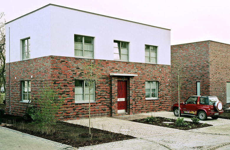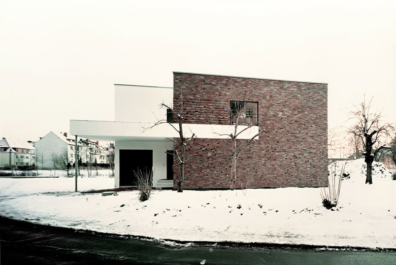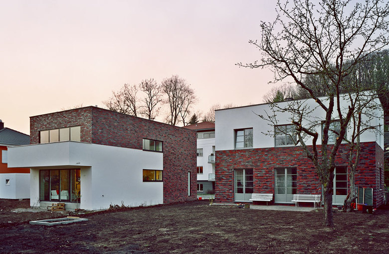 Wohnen, Wasser, Wartburgblick – Entgegen der anhaltenden Zersiedelung der Stadtränder mit Einfamilienhausstrukturen, haben wir ein innerstädtisches Grundstück gesucht, das bis dato als Bauland ungeeignet erschien, um familienfreundliches, modernes, individuelles Wohnen in der Innenstadt zu initialisieren. Für die zentrumsnahe Fläche zwischen Stadt und Fluss, wurde eine Parzellierung und Haustypologie entwickelt, die sich bausteinartig zusammenfügt und ergänzt. Die Tradition der modernen Wohnarchitektur der 30-er Jahre diente als Vorbild für eine zeitgemäße Interpretation des klassischen Einfamilienhauses im Zentrum der Stadt. Beispielhaft für die kleine Siedlung stehen Wohnhaus B. (110 qm Wohnfläche), Wohnhaus F. (150 qm Wohnfläche) und Wohnhaus A. (145 qm Wohnfläche). Kubaturen und Materialien als gestaltprägende und -verbindende Elemente der individuell geplanten Häuser korrespondieren mit den Industriedenkmälern des ehemaligen Automobilwerkes der Nachbarschaft.