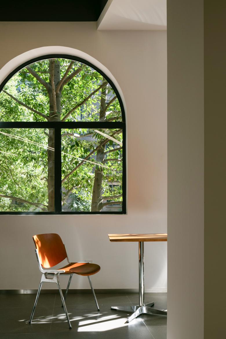 The counter folds like an extension of the climbing wall’s planes. It’s a place not only for energy refills but also for sharing beta—where climbers swap tips and strategies. The flexible furniture arrangement in the lounge area offers greater possibilities for activities within the space.The retail display uses perforated boards, echoing the bolt holes of climbing walls. Flexible and playful, the shelving recalls the endless permutations of routesetting.