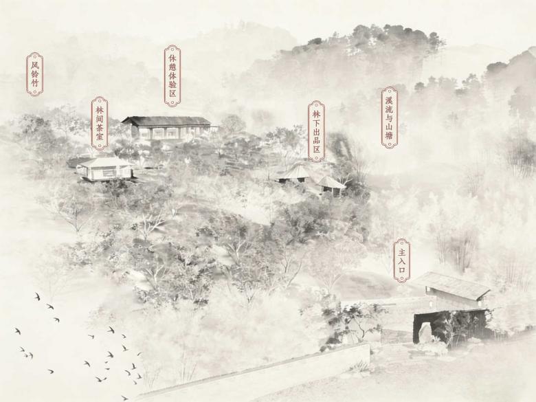On entering the site, one is embraced by the mountain forest’s tranquility and mist. The layered lush tea hills veiled in swirling mist resemble flowing ink wash; the morning bells and evening drums of Gaofeng Chan Monastery stir the heart, exuding tranquil profound Zen spirit. Wind, bells and forest breath resonate harmoniously in human-nature unity, and this symbiotic beauty of nature and culture defines Zen as the core of our design.