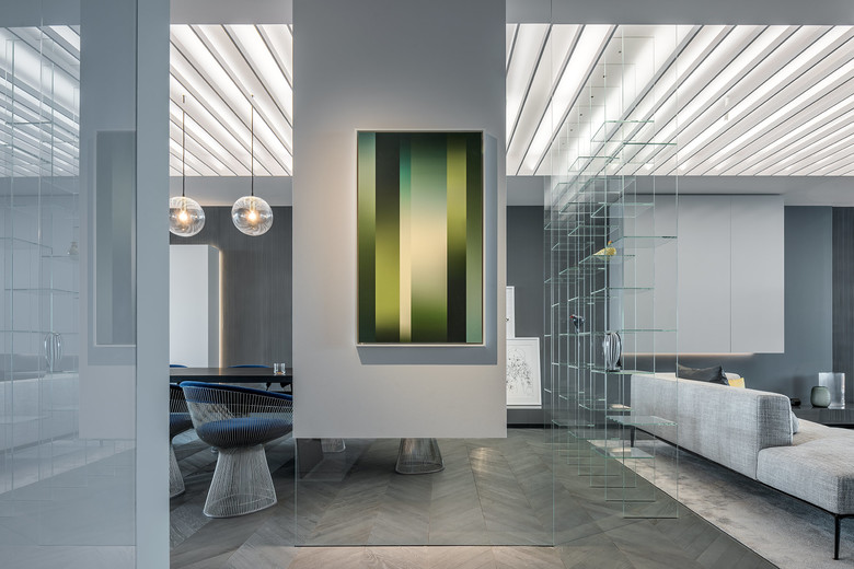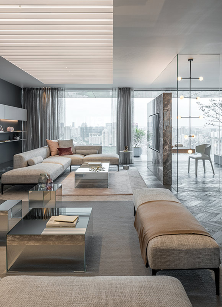 In einem der inneren Stadtbezirke Schanghais hat der Projektentwickler China Eagle Group (CEG) mit dem „CEG Schwarzwald“ einen innovativen und nachhaltigen Ansatz für urbanes Leben in der chinesischen Metropole geschaffen. In einem der entwickelten Wohntürme sind zwei Musterwohnungen entstanden, deren unterschiedlichen Farb-, Licht- und Materialwelten vielfältige Gestaltungsmöglichkeiten aufzeigen. Im Apartment „Shades of Grey“ eröffnet sich dem Besucher eine ruhige und elegante Lebenswelt auf 250 qm, im 27. Stock.