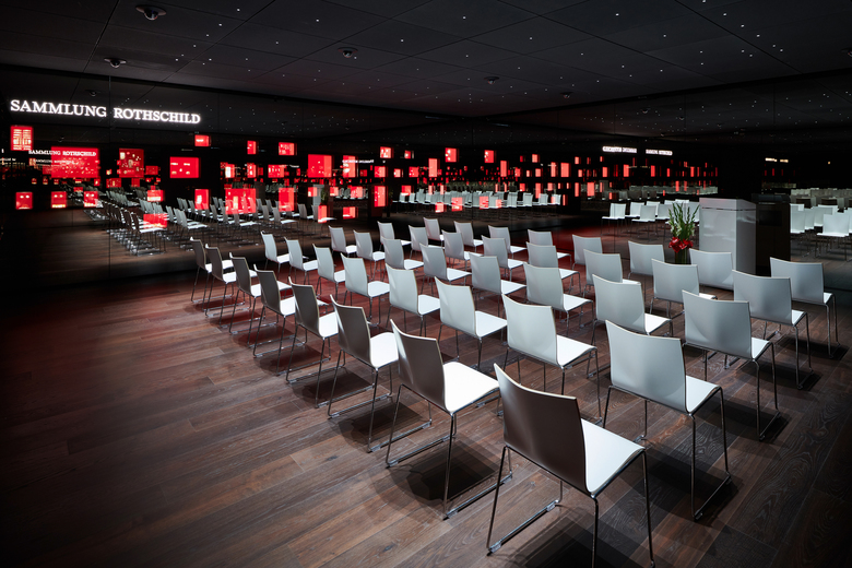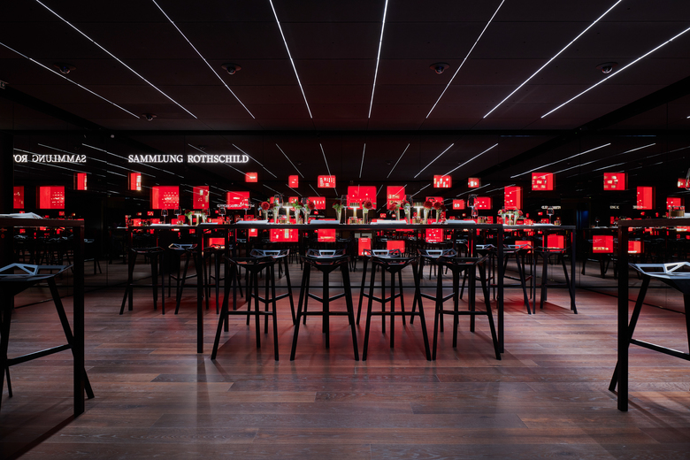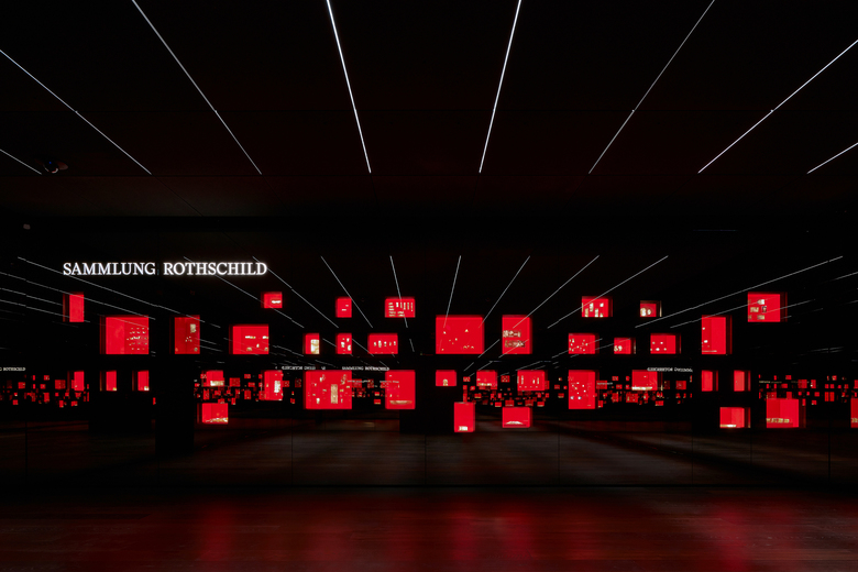 Die Goldkammer ist eines der modernsten Museen Europas, und der Rothschildraum bildet den räumlichen Abschluß des Ausstellungskonzeptes. Die Wände des 64 qm großen Raumes sind mit Spion-Spiegelglas verkleidet, hinter dem auf drei Seiten vollflächig hochauflösende LED-Media-Screens installiert sind. Die vierte Seite bildet die in 38 Vitrinen präsentierte Sammlung Rothschild. Sie umfasst 300 Goldbarren aus 35 Ländern mit einem Gesamtgewicht von über 230 kg.