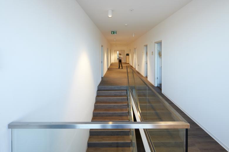 Der nachwachsende Rohstoff Holz wird maximal in Konstruktion und Innenausbau eingesetzt. Helle, lichtdurchflutete Räume erwarten Gäste und Besucher.