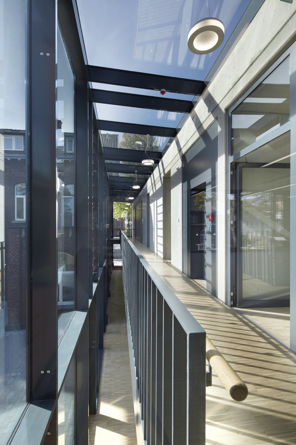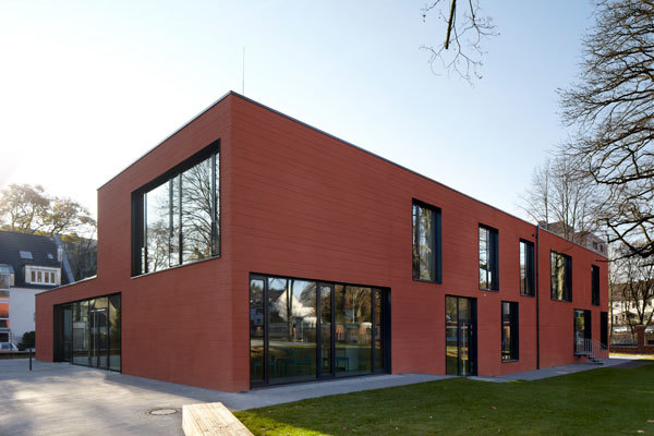 Gemeinschaft bauen – Die lebendige Gemeinde braucht Raum, Nähe, freut sich über Flexibilität und Einfühlungsvermögen. Genau dafür hat sich die Evangelische Kirchengemeinde in Düsseldorf Gerresheim beim Architektur-Wettbewerb 2009 entschieden. Gewonnen hat eine gebaute Umarmung von pier7-architekten. Nach innen gelingt es durch Brücken, Wege und den renaturierten Bach, ein Gefühl von Geborgenheit zu vermitteln. Von außen wirkt die Bebauung durchlässig, einladend, eingebettet zwischen Baumkronen und Grünflächen.