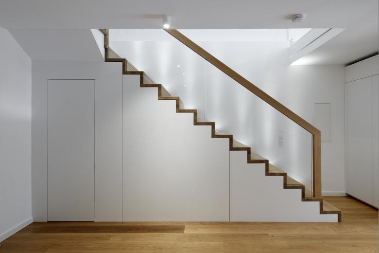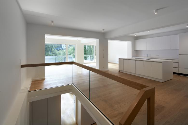 Direkt am Zoopark haben pier 7 architekten ein Mehrfamilienhaus komplett neu organisiert und energetisch aktualisiert. Die radikale Entkernung realisiert fünf außergewöhnliche, lichtdurchflutete Wohnwelten. Maximalen Lebensraum erzielen zwei Maisonette-Einheiten. Garten- und Erdgeschoss sind verbunden, das Dachgeschoss kommt ebenfalls auf zwei Ebenen, hier mit großzügigen Terrassen. Dazwischen drei weitere sonnige Wohngeschosse, alle im Haus mit freiem Blick zum Park wie zum Gartenhof. Innen verwöhnen Eichendielen, weiß verputzte Wände strahlen und kluge Möbeleinbauten verwandeln Maisonette-Treppen diskret in Schrankflächen.