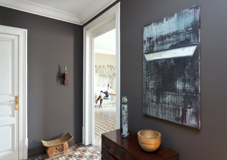Rehabilitación de vivienda en un piso del Eixample. Se aporta un carácter distinto a cada espacio cambiando el color de las paredes. El diseño de la mesa contrasta lo nuevo y lo viejo, con una madera rota en su eje largo para poder pasar cables. Su proporción notablemente alargada permite darle a la mesa varios usos simultáneos y ser el elemento central del salón.