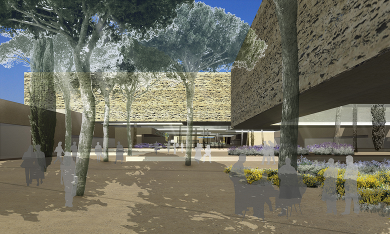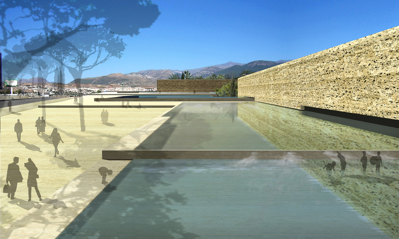 Il principio generale e la struttura del disegno derivano da un’idea di protezione: il progetto affonda nel terreno andando a cercare gli strati geologici ed i microclimi più favorevoli, mentre l’architettura si solleva generando un fitto reticolo di ombre a mitigare l’intensità del sole andaluso.