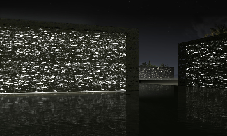 Vaste specchiature d’acqua alimentate dalle piogge invernali raccolte e stoccate in cisterne interrate, isolano i fronti esterni degli edifici, producendo suggestivi effetti scenografici e segnalando che la vita si svolge all’interno. Un ulteriore filtro climatico sarà costituito dalle masse di una rigogliosa vegetazione.