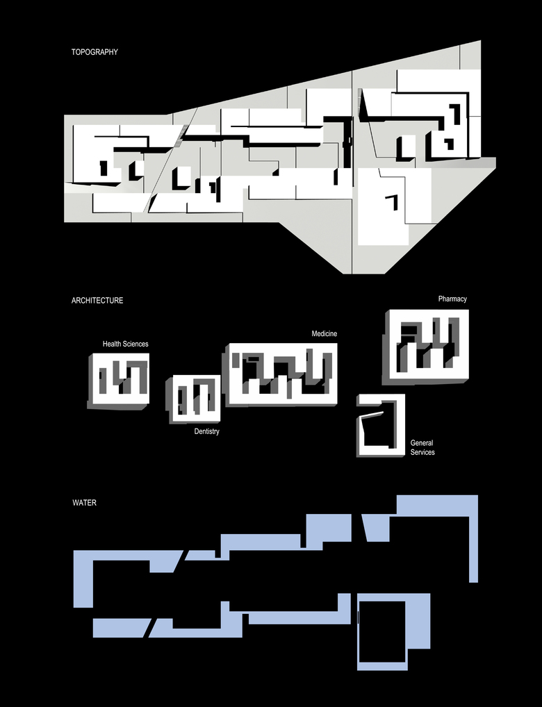 Il programma per il nuovo campus delle scienze mediche di Granada prevede la costruzione di quattro facoltà (Medicina, Farmacia, Scienze Mediche, Odontoiatria) ed un edificio per i Servizi Generali.