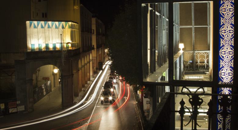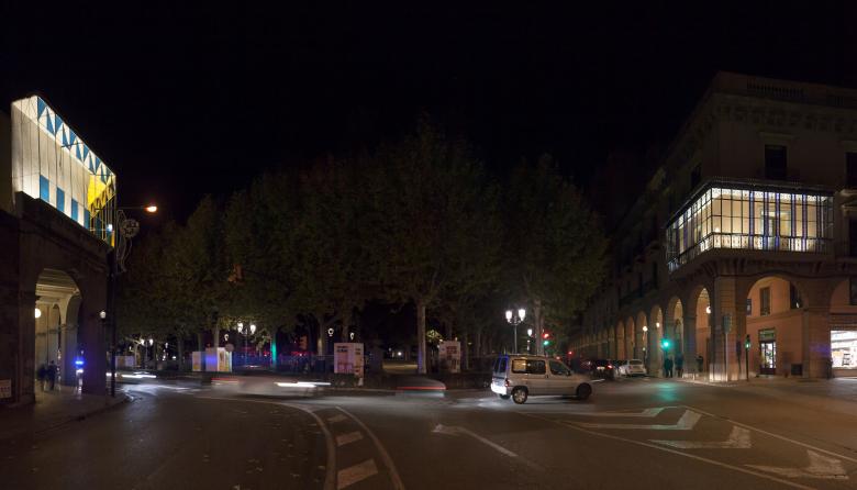 La ciudad está hecha de casas, pero también podemos decir que está hecha de ventanas, sobretodo por la noche. Algunas ventanas son especiales y están en las esquinas, ayudando a configurar los lugares públicos singulares y dar sentido a ciertas perspectivas urbanas. La pieza para el festival Lluèrnia parte de estas premisas. Se instala en una de las esquinas de la plaza Clará de Olot, una plaza porticada rectangular, de composición unitaria e inspiración neoclásica.