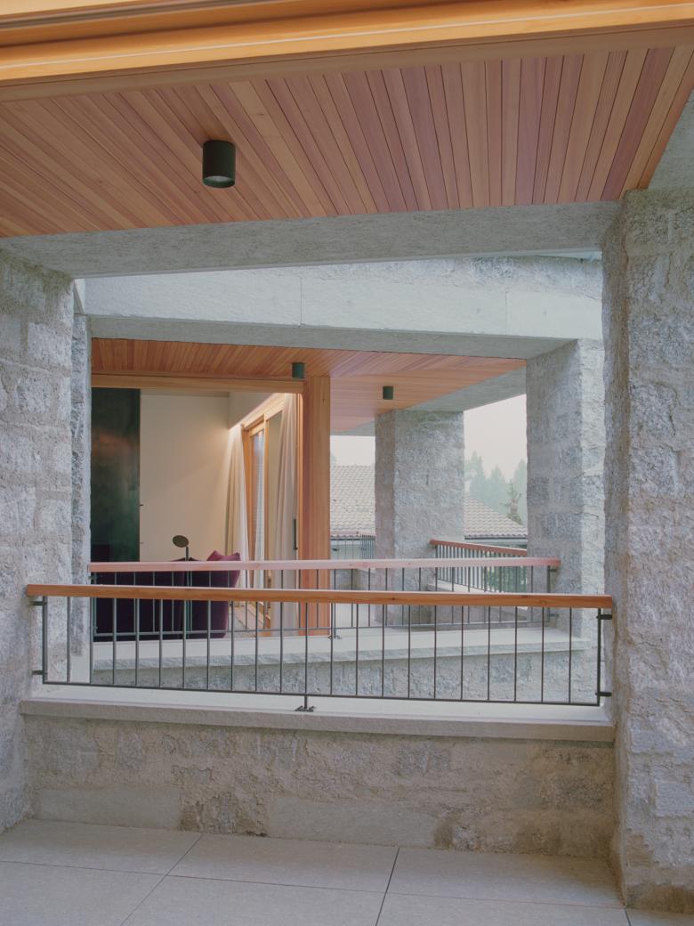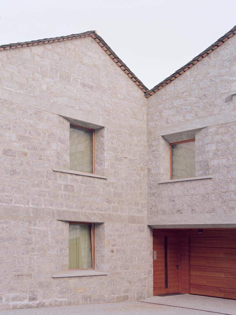 Das Wohnhaus als Massivbauweise geplant, ist als Zweischalenmauerwerk mit einheimischen Bruchsteinen verkleidet. Die alte traditionelle Bauweise ist ein wichtiges Element des Entwurfes, welche sich auf die natürliche Umgebung, auf die Tradition und die wetterbedingte Veränderbarkeit der Materialien bezieht.