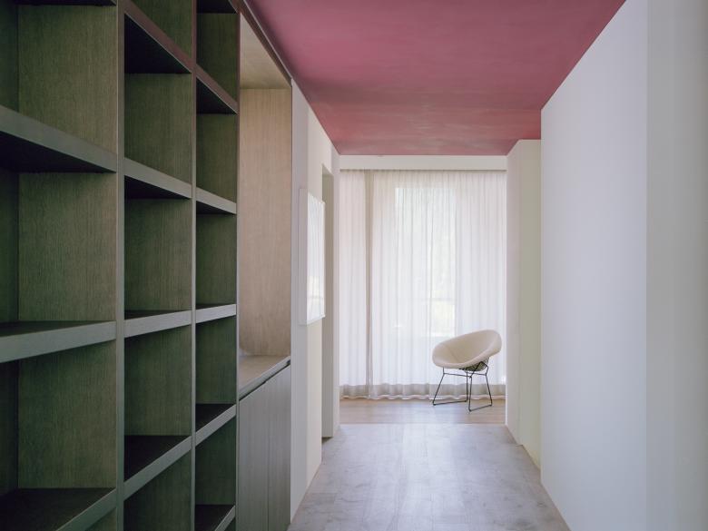 Die Gebäudeteile berühren sich leicht an deren Eckpunkte, verschmelzen jedoch nicht miteinander. Dadurch entstehen interessante Nischen, welche den ursprünglichen Geländeverlauf sensibel ablesbar lassen. Ziel war es, den natürlichen Hangverlauf weitgehend zu erhalten und so wenig wie möglich einzugreifen.